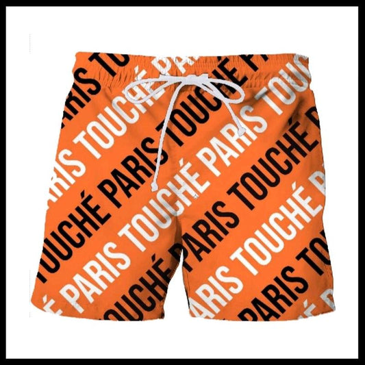Touché Paris Retro Tile Print Board Shorts - Vintage-Inspired Design, Polyester Material, Drawstring Closure, Pockets, Casual Style, Unisex