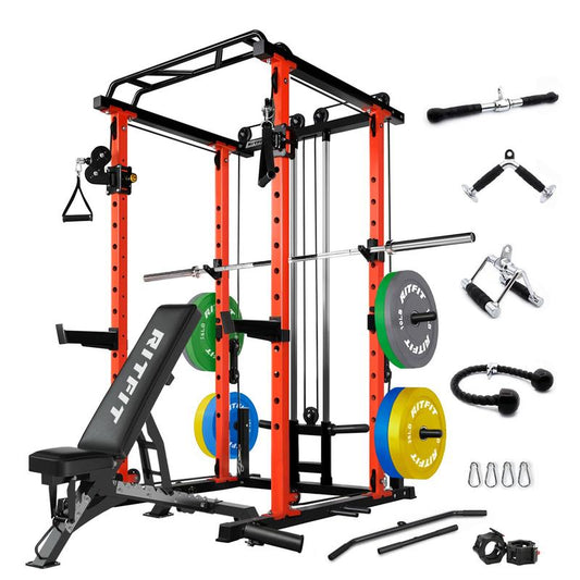 Ritfit Multi-Function Squat Rack Power Cage PPC03 with Cable Crossover System, 1000LBS Capacity Power Rack and Packages with Optional Weight Bench, Olympic Barbell Weight Set, Strength Training,Home Gym Equipment for Garage & Home Gym